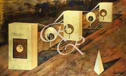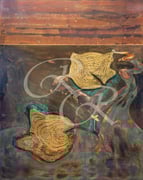 Die Bilder werden nicht gemalt, sondern Blattgold, Blattsilber und Kupfer werden mit Säuren oxidiert. Dadurch ergibt sich ein unvergleichliches Farbenspiel.